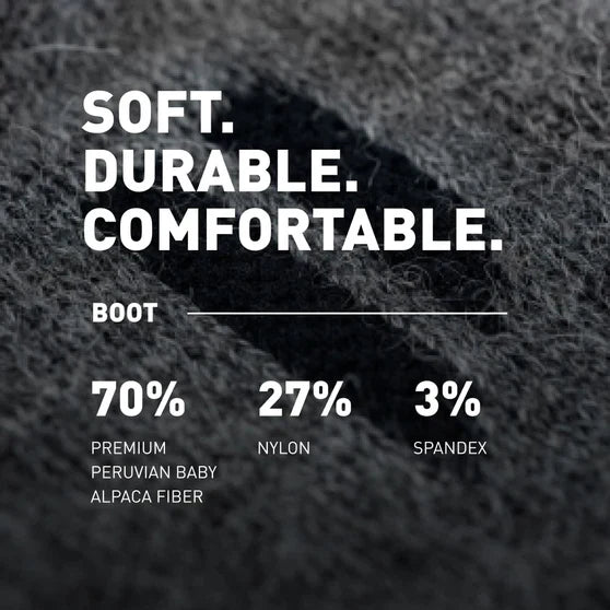 Alpaca wicks away sweat fast, keeping your feet dry and blister-free.